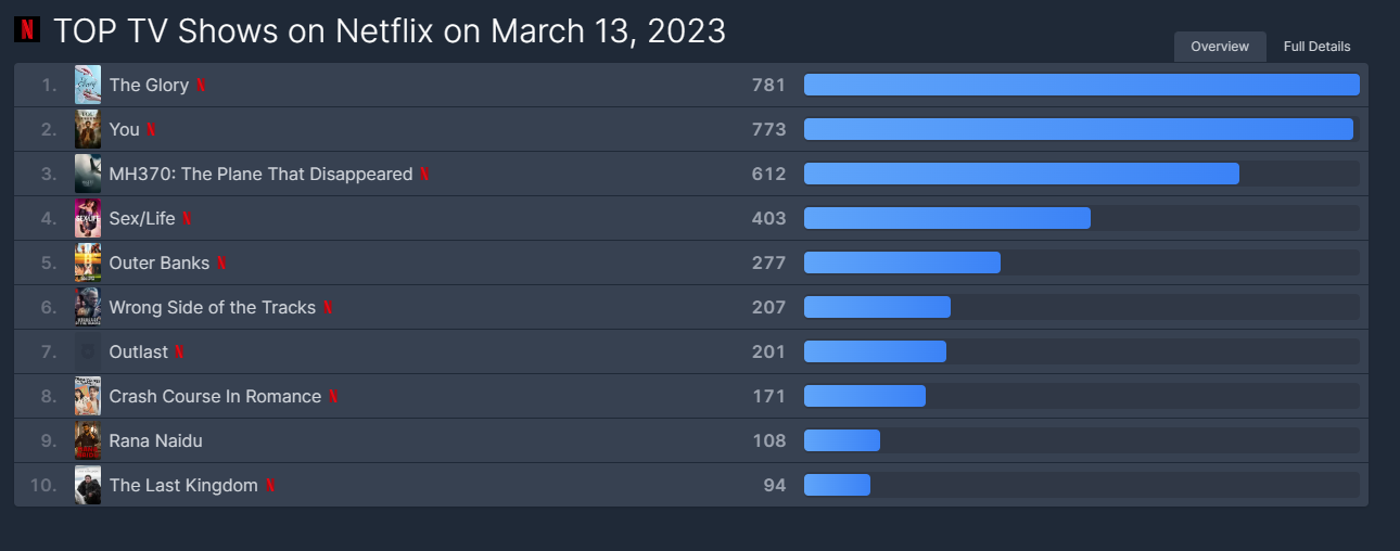 TOP 10 on Netflix in the World on March 13, 2023 • FlixPatrol